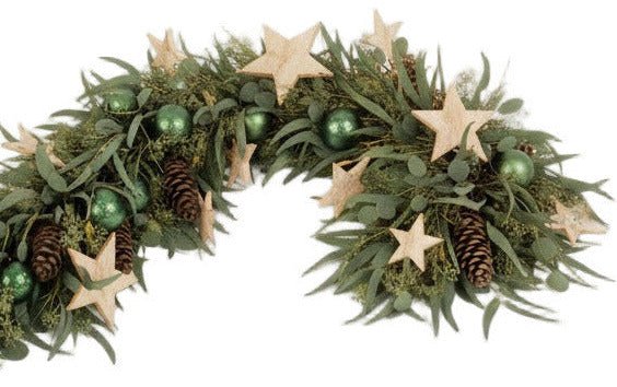 Order your Stars and Green Baubles Eucalyptus Garland today and make your holiday décor shine!