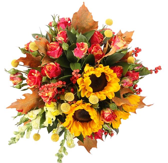 - Sunflowers: the star of the bouquet, these bright and cheerful blooms symbolize adoration and loyalty, instantly lifting the mood.