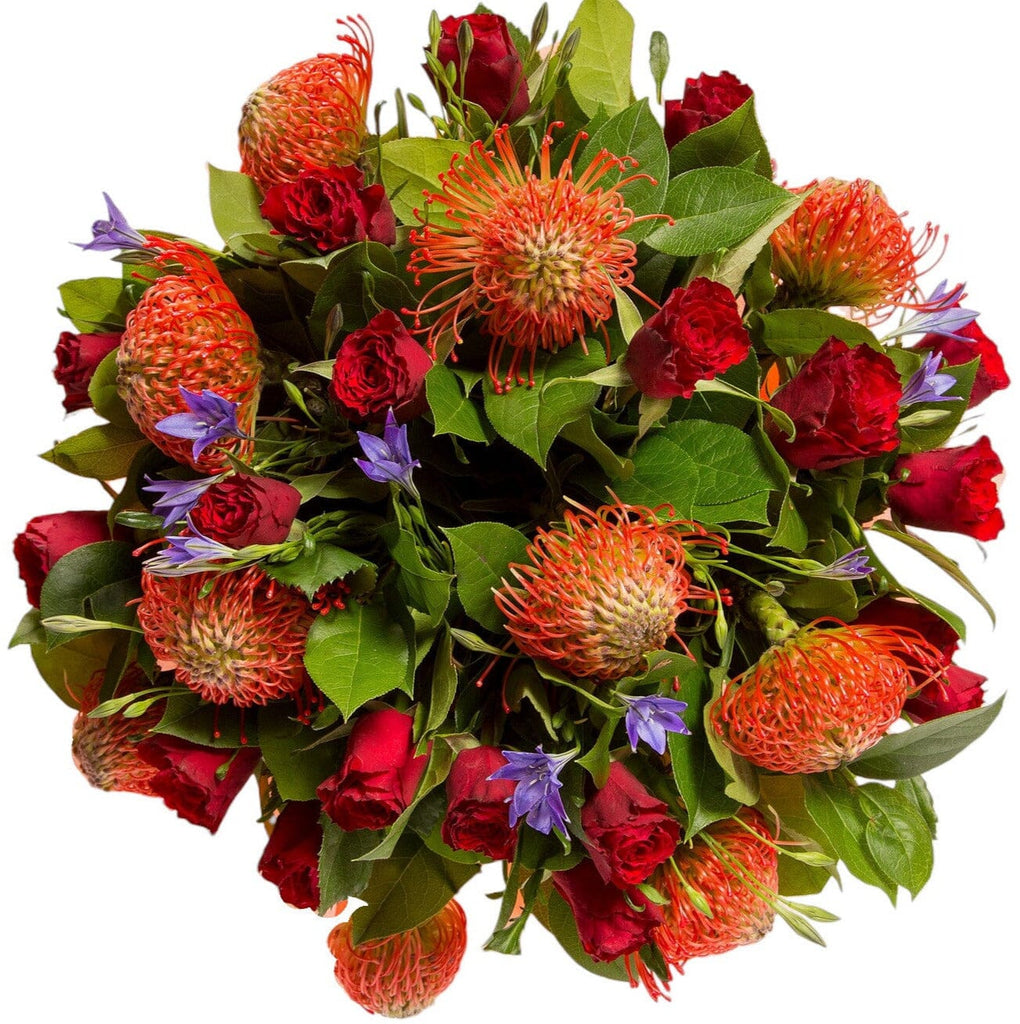 - Orange Leucospermum: also known as pincushion protea, whose fiery tones and intricate structure add dramatic flair and energy.