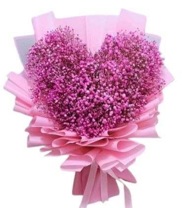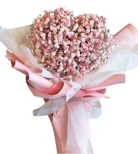 This bouquet features an abundance of gypsophila arranged in a heart-shaped design, symbolizing love, affection, and warmth. Its light, fluffy petals and subtle fragrance make it a timeless choice for celebrating any occasion.