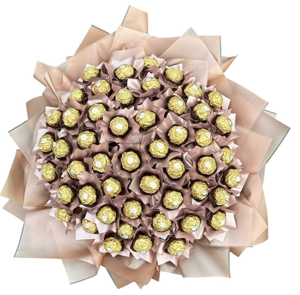 Whether it's for your mother, sister, girlfriend, aunt, or a close friend, this chocolate bouquet is a delightful way to express love, appreciation, or gratitude. Featuring renowned chocolate brands like Lindt, Ferrero Rocher, and Raffaello, this bouquet offers a luxurious treat without the fragility of flowers.