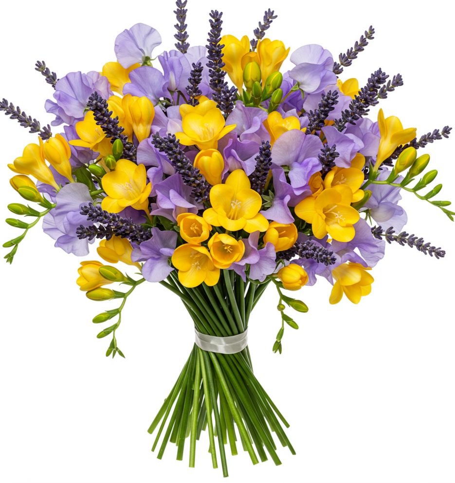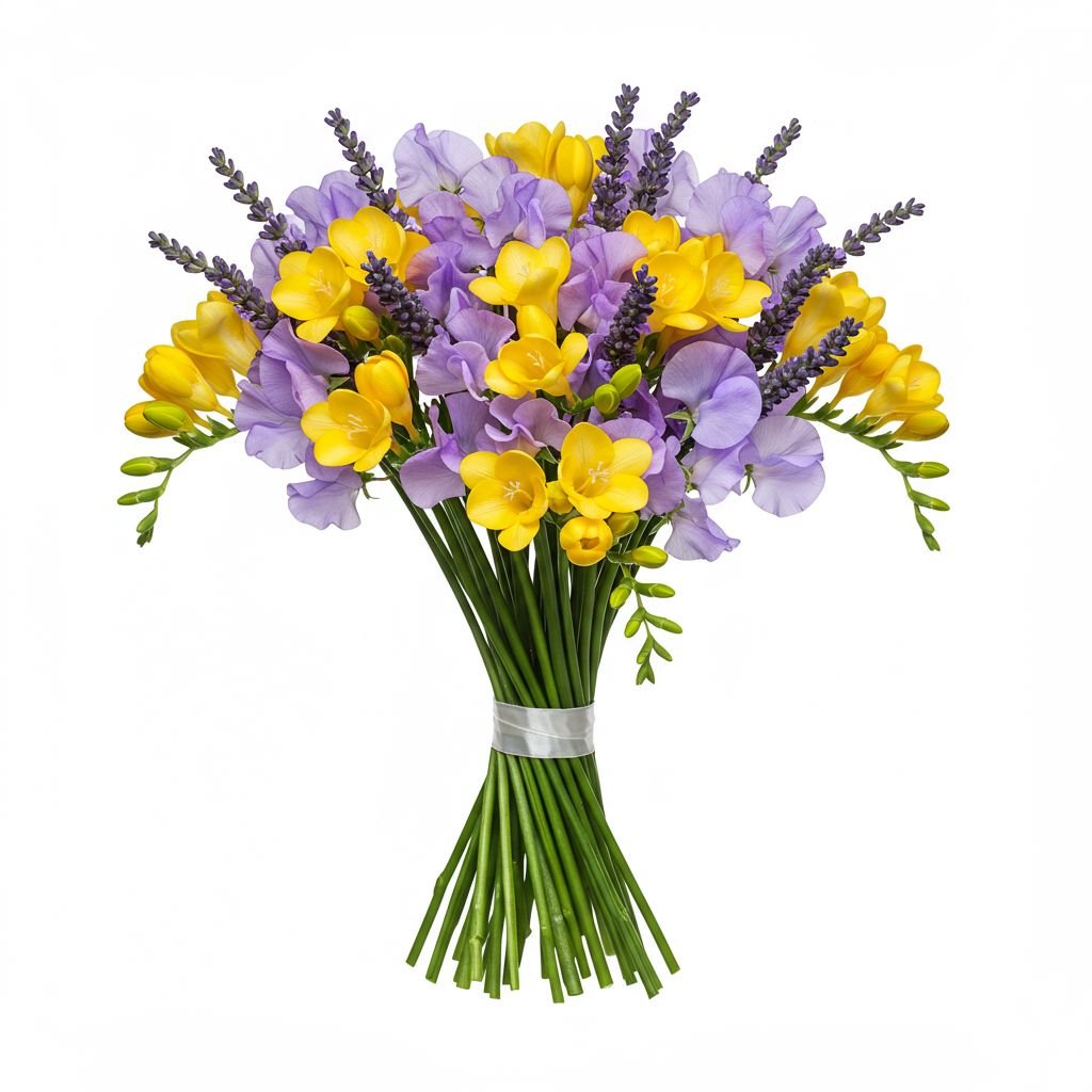Sweet Pea and Freesias Bouquet with Lavender – A Fragrant and Elegant Floral Gift