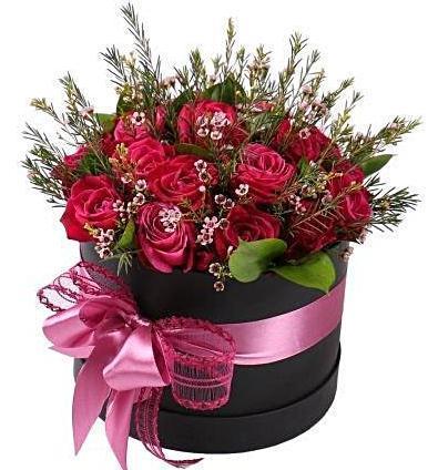 Celebrate love and elegance with our Tenderness Hat Box, a luxurious and timeless floral arrangement that blends vibrant cerise roses with delicate pink wax flowers and lush greenery. Perfect for any special occasion or as a thoughtful gesture to someone dear, this hat box arrangement offers a unique and sophisticated touch.