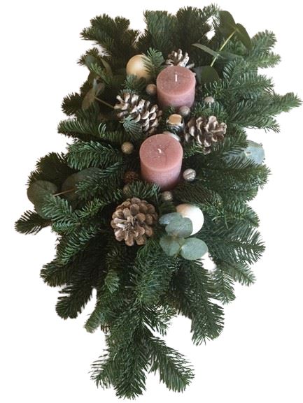 Elevate your holiday decor with our Touch of Pink Festive Centerpiece, a charming arrangement that combines the freshness of nature with soft, romantic hues. This festive centerpiece features a delightful mix of white and silver baubles, natural elements, and a vibrant pink candle, creating a warm and inviting atmosphere perfect for holiday gatherings.
