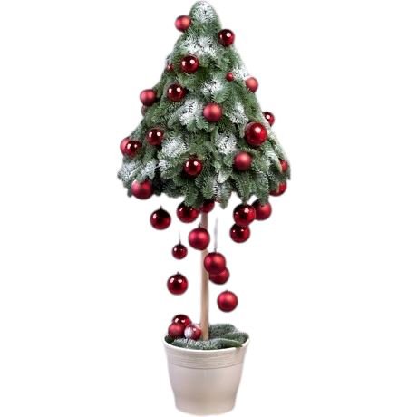 Trendy Snowing Tree Arrangement: Red Baubles Drops – A Chic Holiday Centerpiece