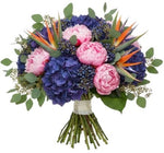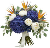 The exotic vibrancy of Birds of Paradise blends seamlessly with the romantic softness of peonies and the richness of hydrangea. Suitable for both tropical-inspired themes and luxurious garden-style settings, making it perfect for any occasion. From bold colors and lush textures to the delicate fragrance of peonies, this bouquet delivers an unforgettable sensory experience. Celebrate life’s most special moments with the Tropical Symphony with Peonies Bouquet.
