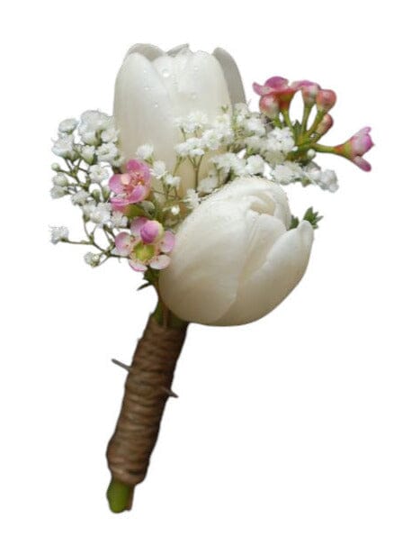Finish your formalwear with natural elegance. Complete your look with the Tulips with Gypsophila Buttonhole – a stylish floral accessory ideal for grooms, groomsmen, or special occasions. Featuring fresh tulips and gypsophila. Delivered across London and the UK.