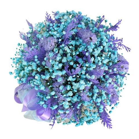 Looking for a breathtaking floral arrangement? Our Turquoise Gypsophila with Purple Leaves Box is a mesmerizing combination of delicate baby's breath in a rare turquoise hue, beautifully accented with rich purple leaves.