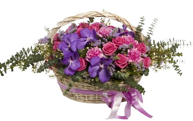 The Vanda Orchids and Roses Basket is a luxurious and elegant floral arrangement that combines the exotic beauty of vanda orchids with the classic charm of roses and carnations.