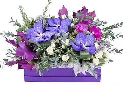 Indulge in the elegance of the Vanda Orchids Luxury Box, a stunning floral arrangement designed to captivate with its luxurious blend of blue vanda orchids, ivory spray roses, purple fragrant freesias, and unique foliage. This exquisite box brings together nature’s finest blooms, creating a breathtaking gift perfect for special occasions, romantic gestures, or elegant home décor.