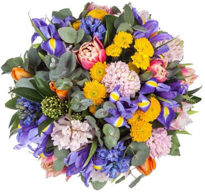 Celebrate the beauty of spring with our Vibrant Spring Bouquet from Flowers Box London. Bursting with color and fragrance, this stunning arrangement captures the essence of the season in all its glory. Imagine a symphony of vibrant hues, from cheerful yellows and radiant oranges to soft pastel pinks and lively purples. Delicate blooms such as tulips, iris and hyacinths dance together in perfect harmony, creating a mesmerizing display of nature's splendor.