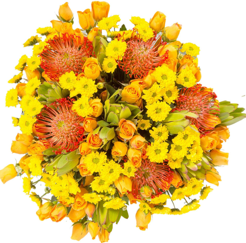 Ignite any occasion with the radiant beauty of our Vibrant Yellow and Orange Exotic Bouquet, a striking arrangement that combines fiery hues with unique textures. Bursting with energy and warmth, this bouquet is the perfect way to bring joy, positivity, and a touch of the extraordinary to someone’s day. This exotic combination is ideal for birthdays, surprise gift, or as a bold statement piece for your home or office. Its vibrant palette evokes sunshine and energy, while the rare blooms ensure a one-of-a-kind gift that stands out from traditional arrangements. The Vibrant Yellow and Orange Exotic Bouquet is more than just flowers — it’s a dynamic expression of joy, optimism, and sophistication. Whether given as a thoughtful gift or displayed as décor, it is guaranteed to make a lasting impression.