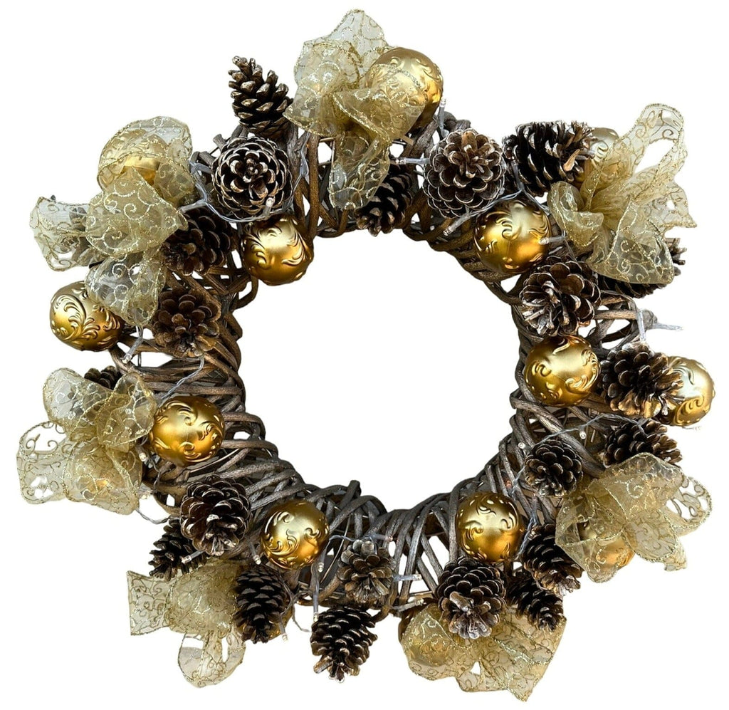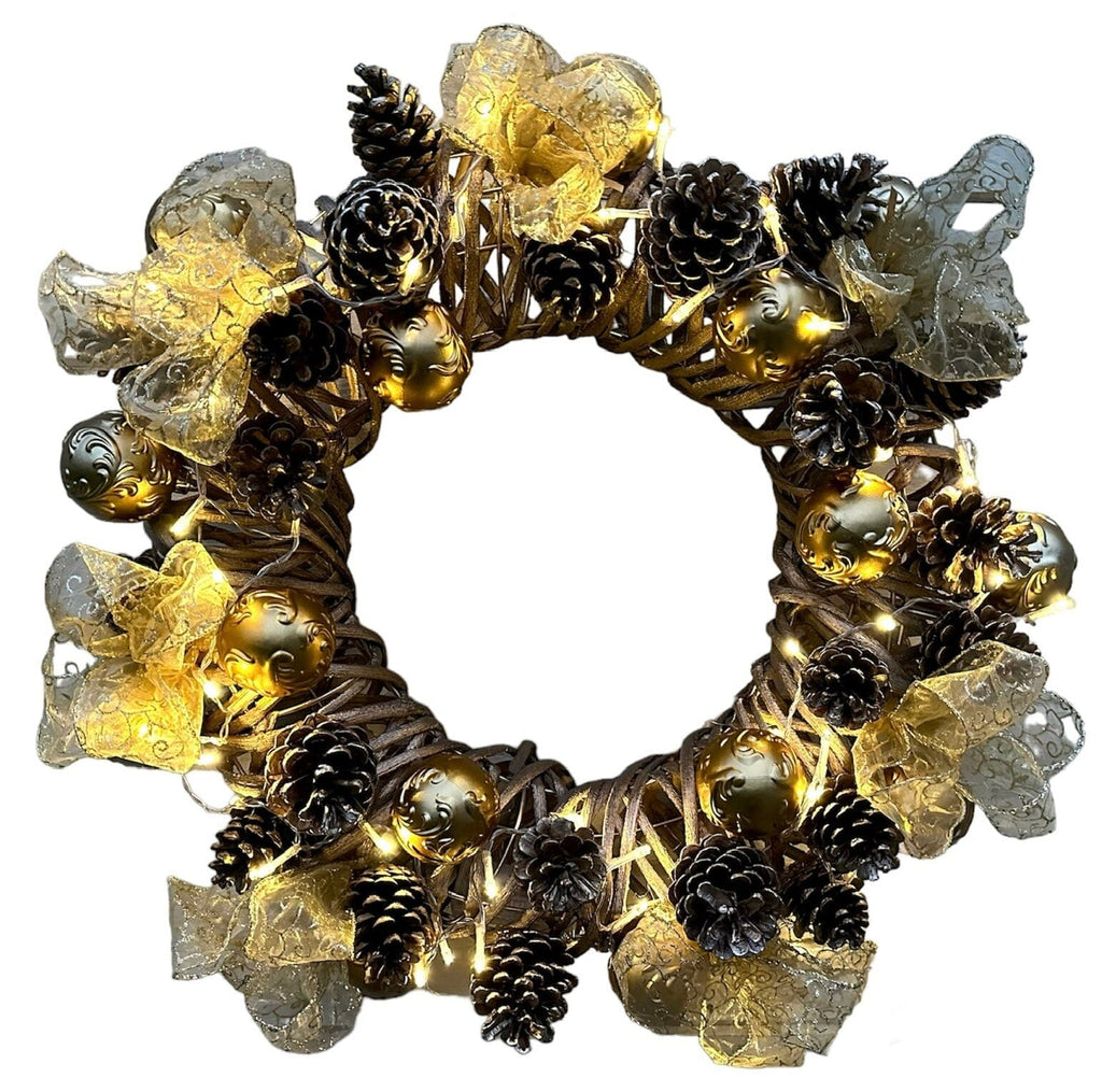 Vintage Gold Wreath with Lights | Perfect for Christmas & Holiday Celebrations