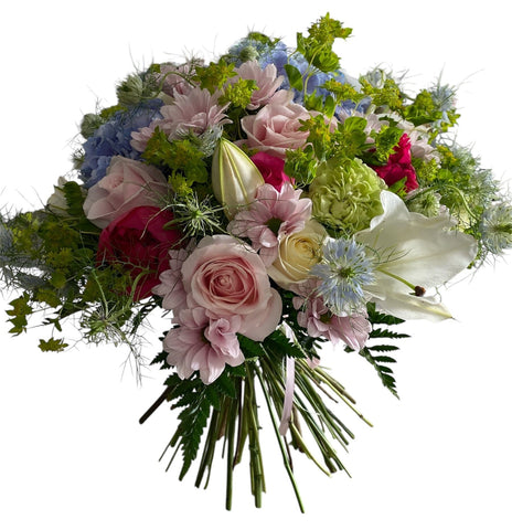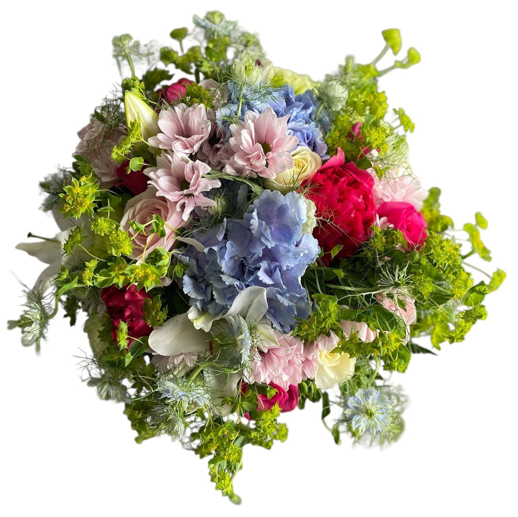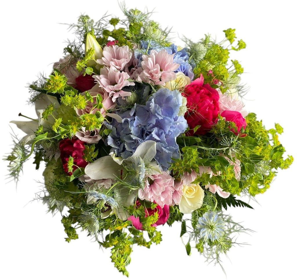 Whimsical Meadow Bouquet – Blue Hydrangea, Lilies, Roses, Chrysanthemums & More