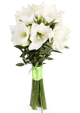 Discover the pure elegance of our White Amaryllis Bouquet, a stunning arrangement that exudes sophistication and charm. The White Amaryllis Bouquet is ideal for celebrations, weddings, or as a thoughtful gift to brighten someone's day. Its timeless beauty will make a lasting impression, bringing joy and sophistication to any space.