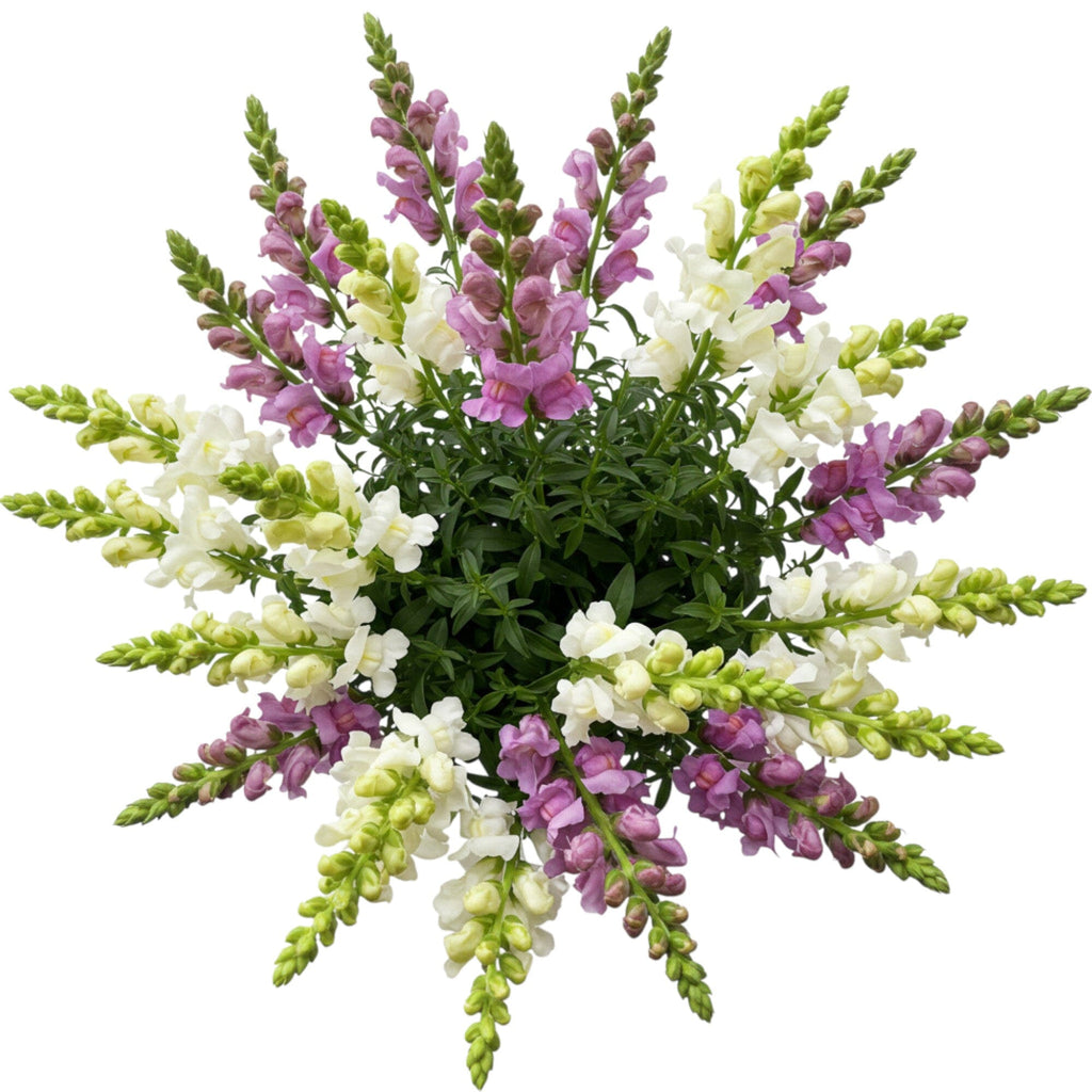- White Snapdragons: symbolizing grace, purity, and innocence, white snapdragons bring a classic, serene feel to any bouquet. Their tall, sculptural blooms add height and elegance, making them a perfect base for sophisticated floral designs.