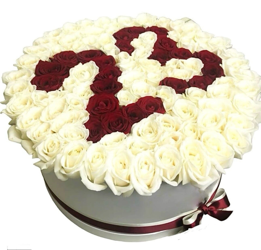 Celebrate life's important moments with our White and Red Roses Box with Numbers — a thoughtful and personalized floral arrangement that is sure to bloom into cherished memories. Order now to make any occasion extra special!