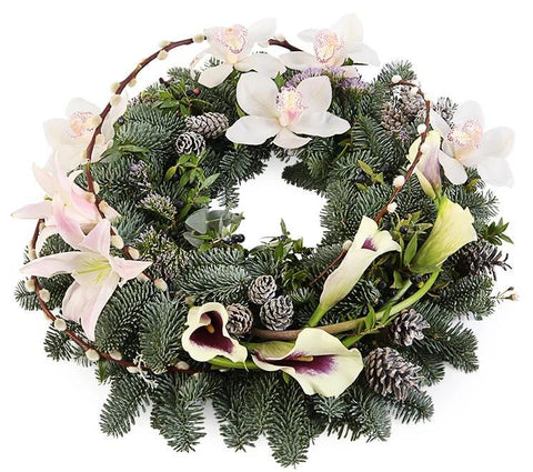 Order your White Cymbidium Orchids Holiday Wreath today and bring elegance and joy to your holiday season!