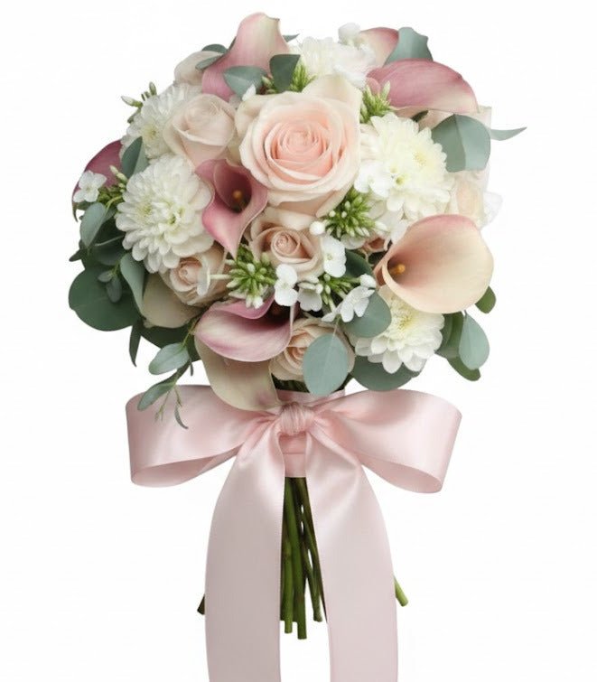White Dahlia and Pink Calla Lily Bouquet – Elegant and Graceful Floral Arrangement