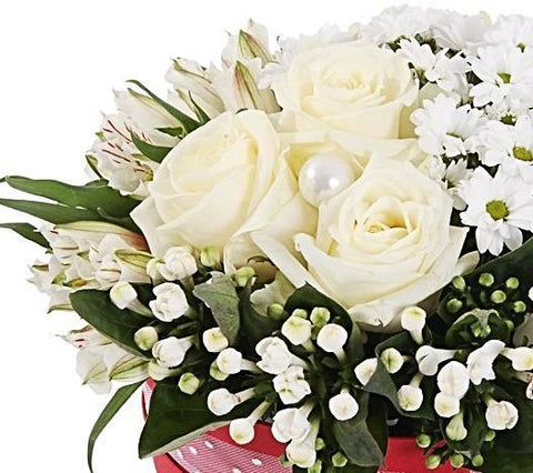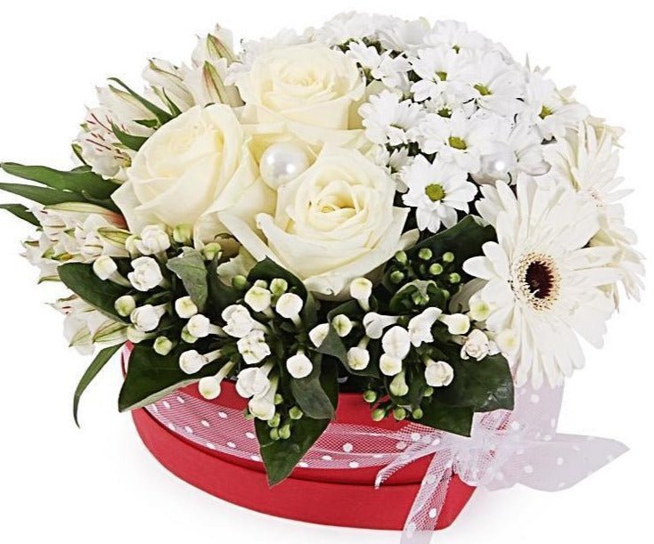 Delight in the timeless beauty of white florals with our White Flowers Rain Heart Box. This elegant arrangement, presented in a charming heart-shaped box, is a sophisticated gift that exudes purity, grace, and love. An exquisite arrangement of pure white blooms, the White Flowers Rain Heart Box is a timeless symbol of elegance and grace