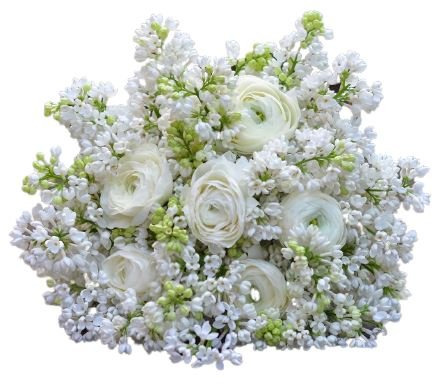 A White Lilac & Ranunculus Bouquet is a beautiful and elegant floral arrangement that combines the delicate charm of white lilac (Syringa) and the intricate beauty of ranunculus flowers. This bouquet is perfect for romantic occasions, weddings, or as a heartfelt gift to convey your love and admiration. The combination of white lilac and ranunculus creates an arrangement that exudes purity, beauty, and a sense of enchantment. It's a meaningful and elegant choice for various special moments in life.