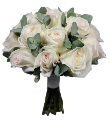 Walk down the aisle with timeless beauty in hand with this White O'Hara Garden Roses with Eucalyptus Bridal Bouquet. Featuring lush, fragrant White O'Hara Garden Roses, known for their soft petals and subtle blush centers, this bouquet exudes romance and sophistication. Hand-tied and arranged with care, this bridal bouquet exudes understated luxury — ideal for garden weddings, classic ceremonies, or minimalist celebrations.