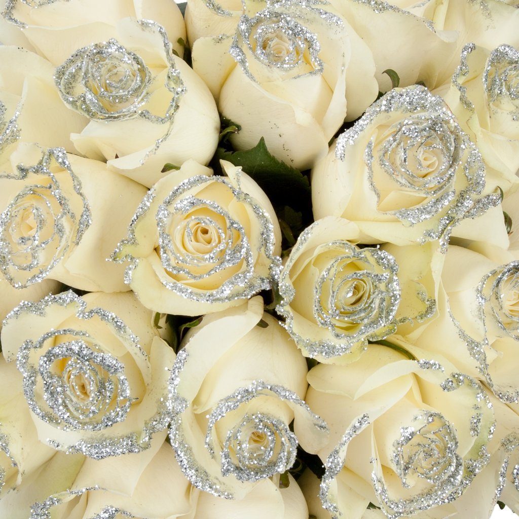 This stunning bouquet is designed for longevity, with the silver glitter enhancing the white roses without overpowering their natural beauty. Elevate any occasion with the luxurious and enchanting White Rose Silver Glitter Bouquet. Make a lasting impression with a gift that shines as brightly as your sentiments