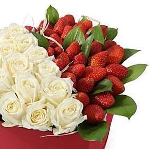 White Roses & Strawberries Heart Box - Unique Gift for Loved Ones