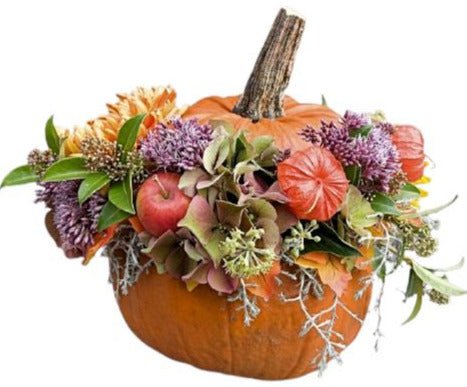 Celebrate the beauty of the season with our Wild Pumpkin Flowers Arrangement. This unique design combines an array of vibrant autumn blooms with charming pumpkin accents, creating a stunning centerpiece for any occasion. Ideal for thanksgiving gatherings, cozy fall decorations, or simply to bring a touch of warmth to your space, this arrangement captures the essence of autumn in every detail.