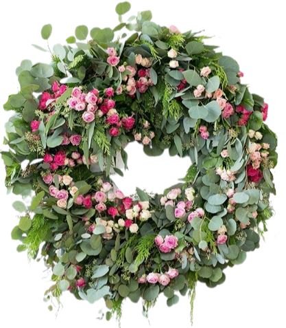 - Cerise Spray Roses: offer a vibrant pop of color, creating contrast with the softer pinks and adding visual interest to the wreath.