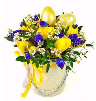 Celebrate the spirit of Easter with our cheerful and vibrant Yellow and Blue Easter Box, designed to bring a touch of springtime joy to any occasion. This delightful arrangement features an eye-catching mix of yellow tulips, blue muscari, and other seasonal elements, creating a fresh and festive display.