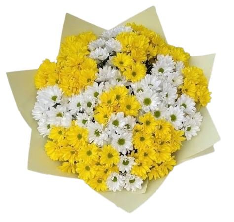 This bouquet vibrant yellow daisy chrysanthemums symbolize joy and happiness, while the classic white daisy chrysanthemums represent purity and elegance. Together, they create a harmonious arrangement that delights the senses and brightens any space.
